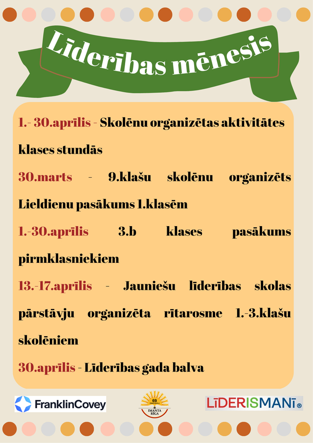 - iesaistīties starptautiskajā Franklin Covey personības pārmaiņu procesā “Līderis manī”,