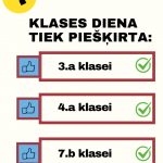Apsveicam 3.a, 4.a un 7.b klases ar iegūto Klases dienu, sakrājot visvairāk pozitīvo ierakstu trešajā izvērtēšanas posmā!