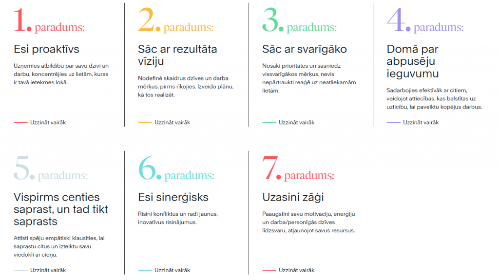 Personības pilnveides process ir balstīts uz efektivitātes principiem un veiksmīgu cilvēku 7 paradumiem.